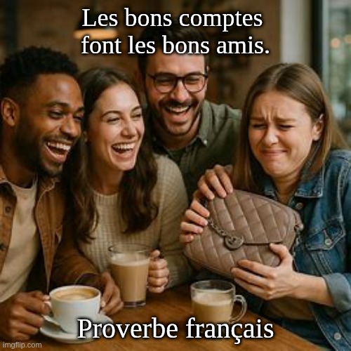 Image: Peter van Geest AI. Signification : Mélanger argent et amitié peut facilement mener à des problèmes.