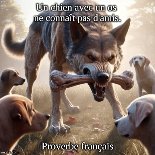 Image: Peter van Geest AI. Signification : Ce proverbe signifie que celui qui possède quelque chose de précieux devient souvent égoïste et réticent à partager, même avec ses amis. À l’image d’un chien qui, ayant reçu un os, le garde farouchement et va jusqu’à chasser ses congénères, les possessions peuvent aussi changer les gens. Il met en lumière l’égoïsme inhérent à la nature humaine lorsque l’intérêt personnel est en jeu. Origine : Il s’agit d’un ancien proverbe populaire (XVIe-XVIIe siècles) dont l’auteur est inconnu. Ces proverbes, issus de la sagesse populaire, se transmettaient oralement avant d’être mis par écrit. Il fait partie du patrimoine culturel commun des langues néerlandaise, allemande et française.