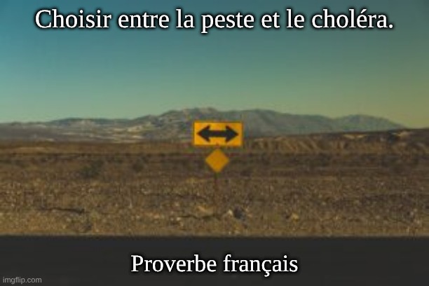 Image: Pablo Garcia Saldana. Signification : Il faut choisir entre deux options tout aussi peu attrayantes ou désastreuses : quel que soit votre choix, il sera mauvais. Cela fait référence à un dilemme sans issue favorable. Origine : Vers 1850-1900, l’expression apparaît dans les journaux et la littérature. Elle était principalement utilisée dans un contexte politique et social : proposer deux mauvaises solutions.