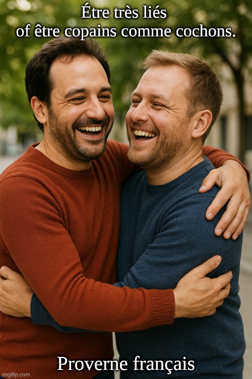 Image: Peter van Geest AI. Signification : Ce sont de très bons amis, très proches — des personnes qui s’entendent très bien et font beaucoup de choses ensemble.