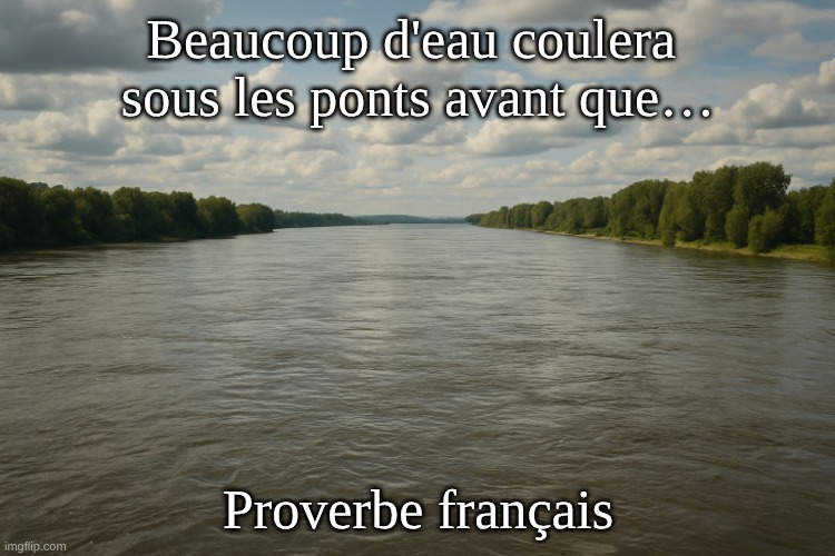 Image: Peter van Geest AI. Signification : Il faudra encore beaucoup de temps avant que quelque chose ne se produise, ou de nombreux développements devront encore avoir lieu avant d’y parvenir. L’image est simple : elle fait référence à un grand fleuve qui coule sans cesse. Quand on dit qu’il faut encore beaucoup d’eau pour couler, on veut dire qu’il faut encore beaucoup de temps, tout comme l’eau qui coule sans cesse et ne s’arrête jamais. Origine : cette expression vient du langage populaire et date du XIXe siècle, voire plus. Elle est comparable à d’anciens proverbes qui associent le temps et les rivières (comme dans plusieurs langues européennes). Les rivières servent traditionnellement de métaphore pour illustrer le passage du temps.