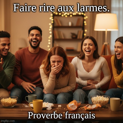 Image: Peter van Geest AI. Signification : Faire rire quelqu’un jusqu’aux larmes ; littéralement « rire jusqu’aux larmes ».