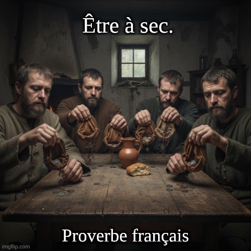 Image: Peter van Geest AI. Signification : Être à sec, également utilisé pour indiquer que quelqu’un n’a plus d’argent.
