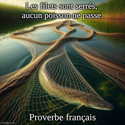 Image: Peter van Geest AI. Signification : Cette expression désigne des règles ou des réglementations très strictes. L’idée est que même les plus petites exceptions (comparées aux anguilles) ne peuvent échapper à l’attention générale. Origine : Cette expression est un dicton français souvent utilisé pour souligner la rigueur de certaines réglementations ou normes. L’utilisation des filets de pêche comme métaphore suggère que même les plus petites choses ne peuvent passer inaperçues. Auteur : L’auteur précis de cette citation est peu connu. Il semble s’agir plutôt d’un dicton traditionnel d’origine française, transmis de génération en génération. Remarque : Ce dicton peut s’appliquer à divers contextes, tels que la législation, les normes sociales ou encore les règlements d’entreprise, où le respect strict des règles est primordial.