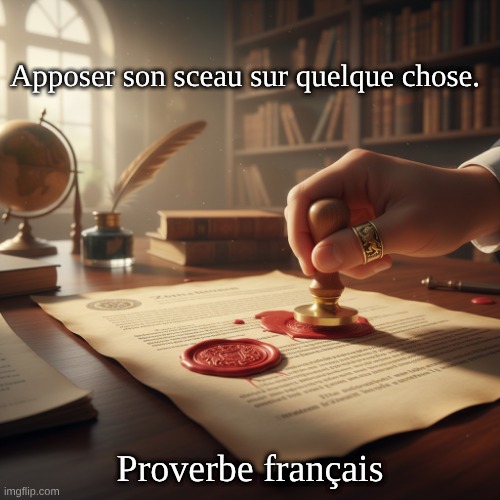 Image: Peter van Geest AI. Signification : cette expression fait référence à la confirmation ou à l’approbation de quelque chose, souvent dans un contexte formel. L’idée d’un sceau symbolise l’autorité et la légitimité, comme l’approbation de documents ou d’accords. Origine : cette expression provient de la tradition selon laquelle un sceau (tel qu’un sceau de cire) était utilisé pour authentifier des documents. L’utilisation des sceaux remonte à l’Antiquité et était un moyen de confirmer l’identité du signataire. Auteur : Il n’y a pas d’auteur spécifique associé à cette expression, car il s’agit d’un dicton courant utilisé en française . Elle s’inscrit dans le contexte culturel et linguistique plus large de la langue française et peut apparaître dans divers documents et situations. Application: Cette expression se retrouve souvent dans des textes juridiques, commerciaux ou administratifs.