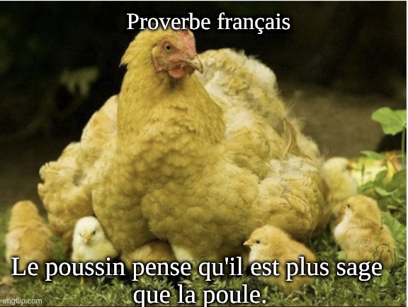 Le poussin pense qu’il est plus sage que la poule.