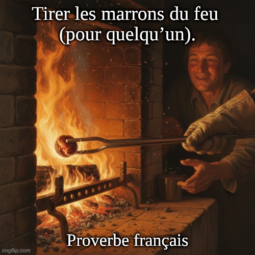 Image: Peter van Geest AI. Signification ✅: – Faire un effort risqué, pénible ou délicat dont un autre profitera. – Valeur souvent péjorative: on sert d’instrument, on se fait manipuler ou on se « brûle » à la place d’autrui. – Nuances: – « Tirer les marrons du feu pour quelqu’un » = faire le sale boulot au bénéfice d’un tiers. – « Tirer ses marrons du feu » = tirer profit pour soi d’une situation risquée. Origine 🐒🐱: – Image tirée de la fable « Le Singe et le Chat » de Jean de La Fontaine (Fables, Livre IX, 1678). – Le singe (Bertrand) pousse le chat (Raton) à retirer des marrons brûlants du feu; le chat se brûle, et le singe mange les marrons. – L’expression s’est ensuite figée en français (attestée à la fin du XVIIe siècle) pour désigner le fait de faire courir un risque à quelqu’un au profit d’un autre. « Auteur » du proverbe ✍️: – Ce n’est pas un proverbe « signé » au sens strict, mais une locution figée de la langue. – On attribue l’image et sa diffusion à Jean de La Fontaine, dont la fable a popularisé l’expression en français.