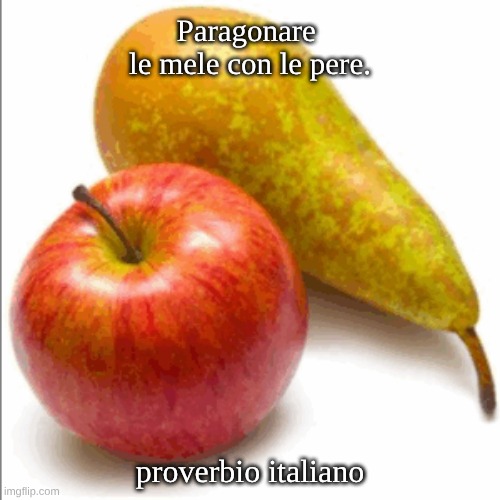Foto: wimmulders.nl. Significato: Si paragona due cose che in realtà sono troppo diverse per poter essere confrontate in modo equo. Indica che alcuni confronti non hanno senso perché le differenze tra loro sono troppo grandi. Origine: l’espressione esiste da molto tempo ed è diffusa in molte lingue europee. Non solo in olandese, ma anche in tedesco, inglese, spagnolo, francese, italiano e portoghese esistono modi di dire simili. La scelta delle mele e delle pere in olandese potrebbe essere dovuta al fatto che questi due frutti sono conosciuti in Europa da migliaia di anni, mentre l’arancia, ad esempio, è arrivata solo molto più tardi.