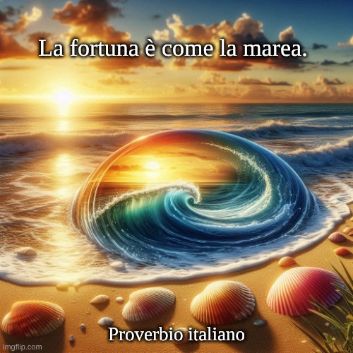 Immagine: Peter van Geest AI. Significato: chi è ricco può diventare povero e chi ora è povero, in futuro potrebbe diventare benestante. Origine: antico proverbio, già in uso nel XVII-XVIII secolo. Si inserisce perfettamente nella tipologia di proverbi moralizzanti che erano popolari in quel periodo.