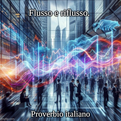 Immagine: Peter van Geest AI. Significato: Gli imprenditori spesso devono affrontare periodi positivi e negativi. Proprio come le maree si alternano con un ritmo naturale, anche il commercio conosce periodi di prosperità e di crisi. Il capitale commerciale e il fatturato oscillano, proprio come le maree. Origine: antico proverbio che affonda le sue radici nella storia marittima. La metafora delle maree era per i popoli mercantili marittimi un paragone ovvio per le fortune altalenanti del commercio.