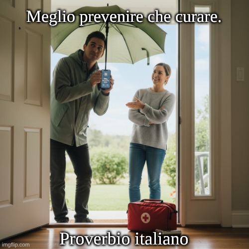 Immagine: Peter van Geest AI. ✅ Significato:“Meglio prevenire che curare” significa che: è preferibile evitare che un problema si presenti, piuttosto che doverlo affrontare dopo, quando è già avvenuto. Si usa spesso in contesti come: salute e medicina 🩺 (prevenzione, vaccini, controlli), sicurezza 🔒 (misure preventive, prudenza), vita quotidiana 📌 (fare manutenzione, pianificare, ridurre rischi). 🧠 Origine: Il proverbio è legato a un principio molto antico, già presente nella cultura classica. L’idea corrisponde a massime latine e greche attribuite alla tradizione medica e morale, tra cui: “Praestat cautela quam medela” (varianti: “Praestat prevenire quam curare”), cioè: “Vale di più la cautela (la prevenzione) che la cura.” In italiano è diventato un proverbio popolare: non nasce come frase “inventata” in un punto preciso, ma come cristallizzazione di una saggezza comune trasmessa nel tempo. ✍️ Autore: Non ha un autore unico certo. È considerato un proverbio e come tale non è attribuibile con sicurezza a una persona specifica. Spesso viene collegato (in modo generale) alla tradizione medica antica (area ippocratica/galenica), ma: non esiste una fonte univoca che identifichi un autore preciso della forma italiana.
