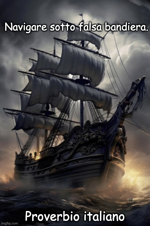 Foto: nostalgicamerica. 🧭 Significato:Letteralmente: navigare sotto una “bandiera diversa da quella della propria nave/paese”. In senso figurato (uso contemporaneo):“fingere di essere qualcun altro/qualcosa di diverso” per raggiungere un obiettivo; agire con “inganno, camuffamento o raggiro”; a volte anche: compiere un’azione in modo che sembri che “qualcun altro” ne sia il responsabile (“falsa bandiera”). ⚓ Origine: Il detto deriva da “navigazione e guerra navale”. In tempi antichi (e anche in seguito), era una tattica comune per le navi: issare una “bandiera nemica, neutrale o amica” per “evitare la sfiducia”; e quindi essere in grado di avvicinarsi per “spiare, abbordare o attaccare”. Sfumatura storica: nella tradizione del diritto marittimo, spesso una nave da guerra, in caso di un attacco effettivo o di apertura del fuoco, doveva infine esporre la sua “vera bandiera” (questo variava a seconda del periodo e del contesto), ma l’inganno precedente era un fenomeno ben noto. ✍️ Autore: Non è possibile identificare un autore specifico. Si tratta di un detto “tradizionale, di derivazione marittima” (un’espressione idiomatica) che è nato dalla pratica ed è successivamente diventato “linguaggio comune”. Pertanto, non può essere attribuito in modo affidabile a un singolo scrittore, poeta o politico. 🗓️ Prime occorrenze/età: L’espressione e le sue varianti compaiono in diverse lingue europee perché la tattica era nota a livello internazionale: inglese: “navigare sotto falsi colori” / “false flag”. ✅ L’attacco è stato condotto sotto falsa bandiera per scaricare la colpa su un altro gruppo.