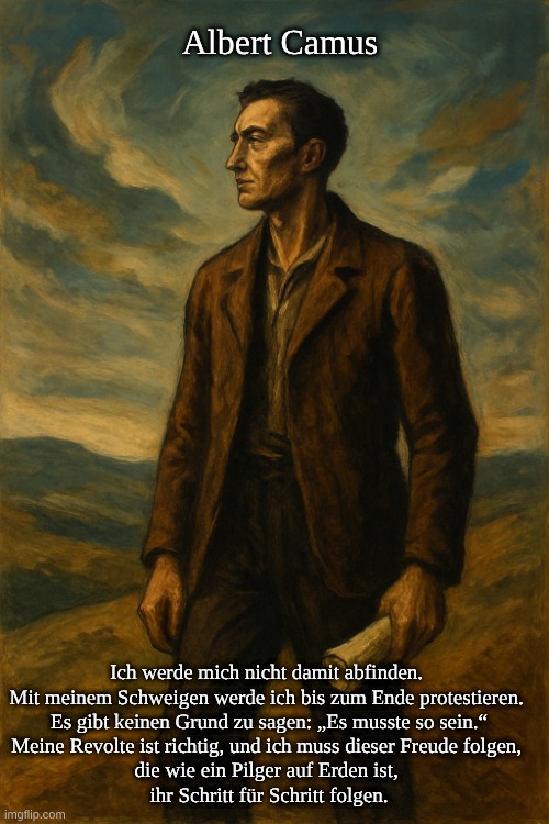 Ich werde mich nicht damit abfinden. Mit meinem Schweigen werde ich bis zum Ende protestieren. Es gibt keinen Grund zu sagen: „Es musste so sein.“ Meine Revolte ist richtig, und ich muss dieser Freude folgen, die wie ein Pilger auf Erden ist, ihr Schritt für Schritt folgen.