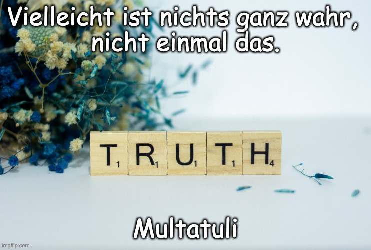 Foto: Alex Shute. Bedeutung:Interpretation: Die Aussage „Vielleicht ist nichts absolut wahr, nicht einmal dies“ spielt mit der Relativität von Wahrheiten und Perspektiven. Sie legt nahe, dass selbst die vermeintlich unumstößlichen Wahrheiten nicht absolut sind und Zweifeln und Interpretationen unterliegen. Philosophische Implikation: Sie wirft Fragen nach dem Wesen von Wissen, Wahrheit und der Subjektivität menschlicher Erfahrung auf. Ursprung: Autorschaft: Diese Aussage wird häufig dem niederländischen Schriftsteller und Kritiker Multatuli, Pseudonym von Eduard Douwes Dekker, zugeschrieben. Kontext: Multatuli war eine einflussreiche Persönlichkeit des 19. Jahrhunderts, bekannt für seine Kritik an der niederländischen Kolonialpolitik und der sozialen Ungleichheit. Sein Werk „Max Havelaar“ ist ein Klassiker, der diese Themen behandelt. Über Multatuli: Leben: Multatuli wurde 1820 geboren und starb 1887. Er war ein leidenschaftlicher Verfechter sozialer Gerechtigkeit. Stil: Sein Schreibstil war oft provokativ und herausfordernd, mit einem starken Fokus auf ethische und soziale Fragen. Schlussfolgerung: Die Aussage regt zum Nachdenken darüber an, was wir für wahr halten und wie sich unsere Überzeugungen verändern können. Es ist ein eindrucksvolles Beispiel für die Tiefe von Multatulis Denken und seinen Einfluss auf Literatur und Gesellschaft.