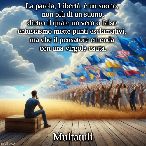 La parola, Libertà, è un suono, non più di un suono, dietro il quale un vero o falso entusiasmo mette punti esclamativi, ma che il pensatore emenda con una virgola cauta.