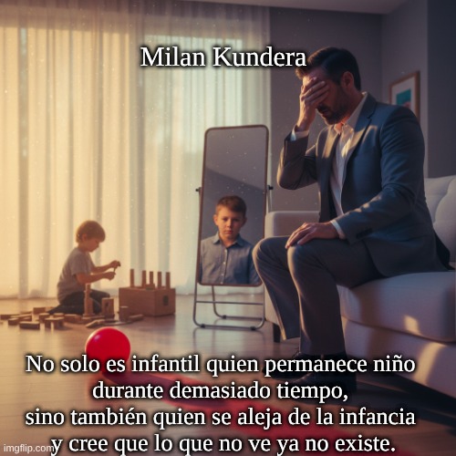 Mensaje: La adultez significa tener en cuenta lo invisible y lo ausente: el pasado, la responsabilidad, el sufrimiento ajeno, los hechos que se ocultan. Negarlo es moral e intelectualmente miope. Origen y contexto 🧭:  Esta cita se alinea estrechamente con el tema central de la novela de Kundera: el borrado de los recuerdos (tanto privados como políticos), la reescritura de la historia y la tentación de fingir que lo que ha desaparecido de la vista no existe. La frase hace referencia implícita al concepto psicológico de “permanencia del objeto” (Piaget): la comprensión de que las cosas siguen existiendo incluso cuando no las vemos. Formulación original (versión francesa muy citada) 🇫🇷: “N’est pas infantile seulement celui qui reste enfant trop longtemps; l’est also celui qui s’arrache à l’infance et croit que th’il ne voit pas n’existe plus”. Obra: Milan Kundera, Le Livre du rire et de l’oubli (1979). La versión holandesa es una variante de traducción; la redacción puede diferir ligeramente según la edición. Resumen central ✍️ Autor:  Milan Kundera.  Obra/año: Het boek van de lach en de vergetheid, 1979.  Mensaje: Una advertencia contra dos formas de infantilismo: la ingenuidad duradera y la negación adulta de lo que está fuera de la vista.