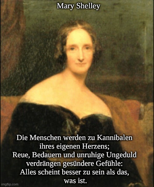 Die Menschen werden zu Kannibalen ihres eigenen Herzens; Reue, Bedauern und unruhige Ungeduld verdrängen gesündere Gefühle: Alles scheint besser zu sein als das, was ist.