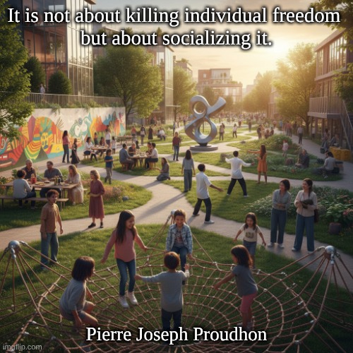 Photo: citations.quest-france.fr. Remark: The statement reflects Proudhon’s belief in progress through freedom, whereby he saw both individual and collective emancipation as essential to human development and happiness.