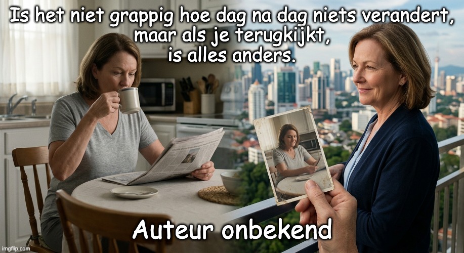 Is het niet grappig hoe dag na dag niets verandert, maar als je terugkijkt, is alles anders.