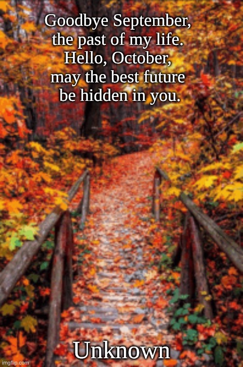 Goodbye September, the past of my life. Hello, October, may the best future be hidden in you.