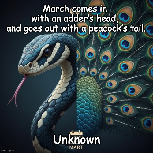 March comes in with an adder’s head, and goes out with a peacock’s tail.