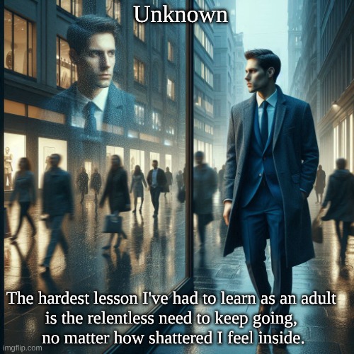 The hardest lesson I’ve had to learn as an adult is the relentless need to keep going, no matter how shattered I feel inside.