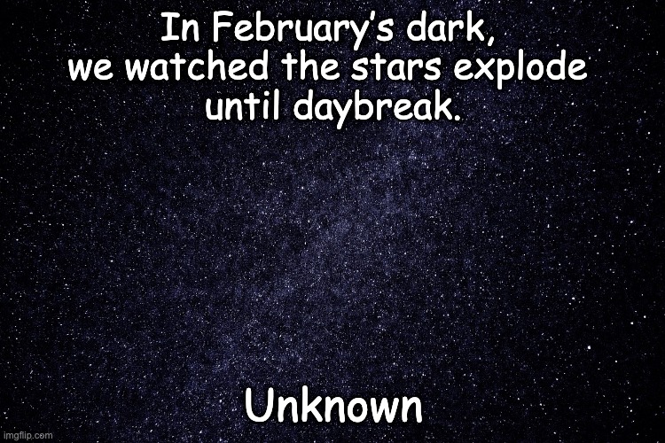 Photo: Dorothe. Meaning✨: February represents the darkest, coldest phase of winter. “Stars shine until the break of day” suggests endurance/hope: even in the dark there is light, and the morning inevitably comes. It can also express intimacy or connection: spending the night together until the first glow of dawn. Origin and author 🔎: No solid source in known quotation collections, or frequently quoted song lyrics. Although Laura Veirs is often mentioned as the author, this is not the case. She often writes about nature, celestial bodies, and nights, but there is no documented line of hers in English that directly corresponds to this sentence. Moreover, the phrasing sounds like not an original English lyric. Conclusion: Not yet attributable to Laura Veirs; origin unknown/unverified.