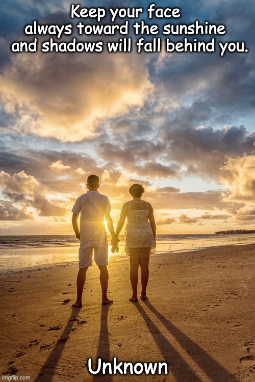 Keep your face always toward the sunshine – and shadows will fall behind you.