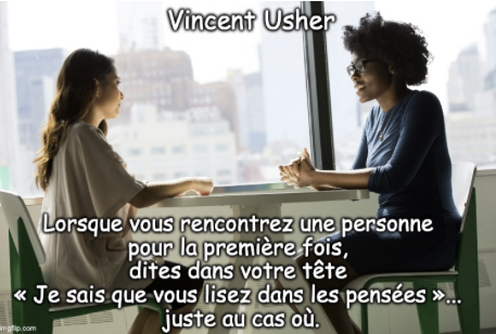 Lorsque vous rencontrez une personne pour la première fois, dites dans votre tête « Je sais que vous lisez dans les pensées »… juste au cas où.