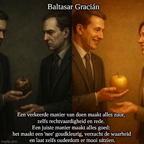 Een verkeerde manier van doen maakt alles zuur, zelfs rechtvaardigheid en rede. Een juiste manier maakt alles goed: het maakt een ‘nee’ goudkleurig, verzacht de waarheid en laat zelfs ouderdom er mooi uitzien.