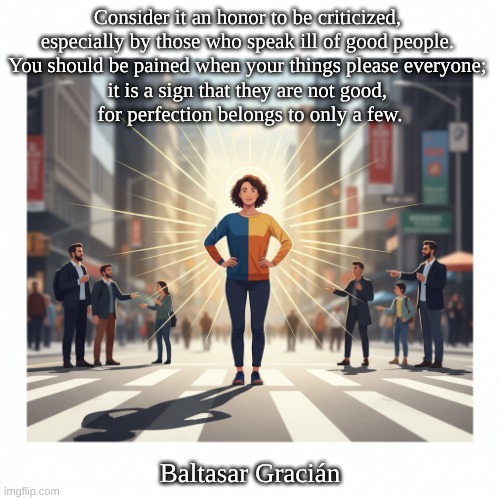 Content: This frequently cited work offers advice on how to conduct oneself in the complex world of social interactions and political intrigue. Gracián emphasizes the need for caution, tact, and strategy in life. Key Themes Practical Wisdom: Gracián encourages acting wisely and strategically in social situations. Criticism and Reflection: His work addresses the value of self-reflection and the impact of criticism, which aligns with the previously discussed statement about criticism. Conclusion: Gracián’s work remains relevant and offers timeless lessons on human nature and social skills, making him an influential thinker in philosophy and literature.