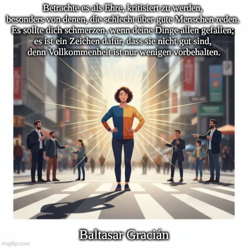 Inhalt: Dieses häufig zitierte Werk gibt Ratschläge für das Verhalten in der komplexen Welt sozialer Interaktionen und politischer Intrigen. Gracián betont die Notwendigkeit von Vorsicht, Taktgefühl und Strategie im Leben. Kernthemen: Praktische Weisheit: Gracián ermutigt zu klugem und strategischem Handeln in sozialen Situationen. Kritik und Reflexion: Sein Werk behandelt den Wert der Selbstreflexion und die Auswirkungen von Kritik, was mit der zuvor besprochenen Aussage über Kritik übereinstimmt. Fazit: Graciáns Werk ist nach wie vor relevant und bietet zeitlose Lehren über die menschliche Natur und soziale Kompetenzen, was ihn zu einem einflussreichen Denker in Philosophie und Literatur macht.