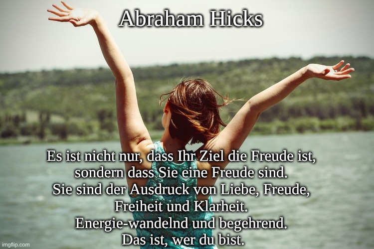 Es ist nicht nur, dass Ihr Ziel die Freude ist, sondern dass Sie eine Freude sind. Sie sind der Ausdruck von Liebe, Freude, Freiheit und Klarheit. Energie-wandelnd und begehrend. Das ist, wer du bist.