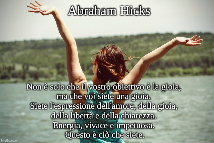 Non è solo che il vostro obiettivo è la gioia, ma che voi siete una gioia. Siete l’espressione dell’amore, della gioia, della libertà e della chiarezza. Energia, vivace e impetuosa. Questo è ciò che siete.