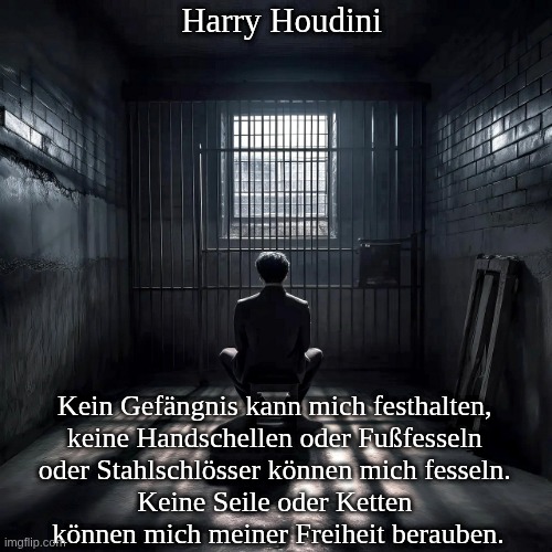 Kein Gefängnis kann mich festhalten, keine Handschellen oder Fußfesseln oder Stahlschlösser können mich fesseln. Keine Seile oder Ketten können mich meiner Freiheit berauben.