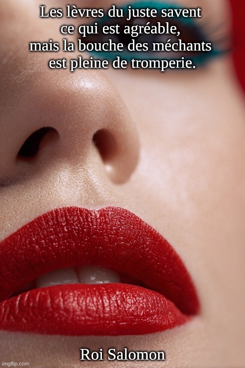 Les lèvres du juste savent ce qui est agréable, mais la bouche des méchants est pleine de tromperie.