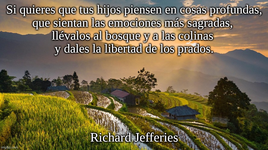 Si quieres que tus hijos piensen en cosas profundas, que sientan las emociones más sagradas, llévalos al bosque y a las colinas y dales la libertad de los prados.