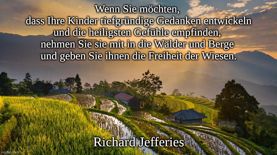 Wenn Sie möchten, dass Ihre Kinder tiefgründige Gedanken entwickeln und die heiligsten Gefühle empfinden, nehmen Sie sie mit in die Wälder und Berge und geben Sie ihnen die Freiheit der Wiesen.