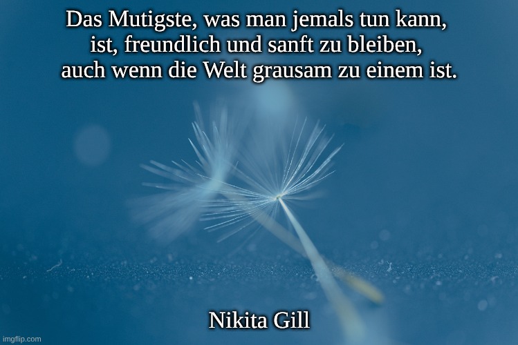 Das Mutigste, was man jemals tun kann, ist, freundlich und sanft zu bleiben, auch wenn die Welt grausam zu einem ist.