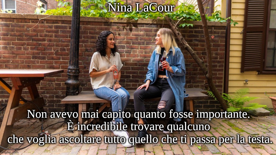 Non avevo mai capito quanto fosse importante. È incredibile trovare qualcuno che voglia ascoltare tutto quello che ti passa per la testa.