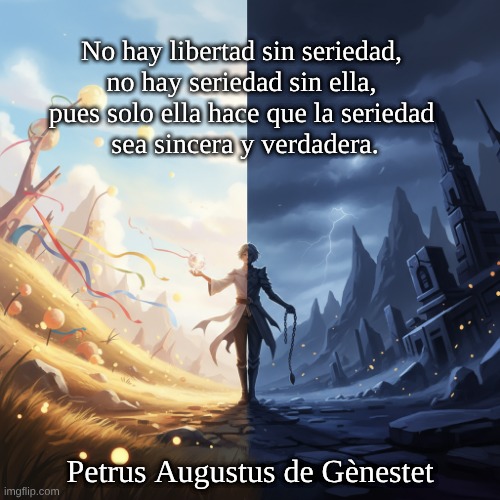 No hay libertad sin seriedad, no hay seriedad sin ella, pues solo ella hace que la seriedad sea sincera y verdadera.