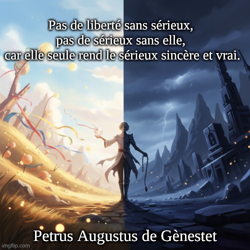 Pas de liberté sans sérieux, pas de sérieux sans elle, car elle seule rend le sérieux sincère et vrai.