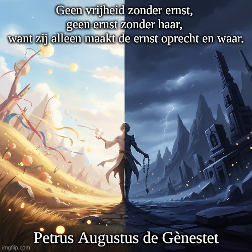 Geen vrijheid zonder ernst, geen ernst zonder haar, want zij alleen maakt de ernst oprecht en waar.