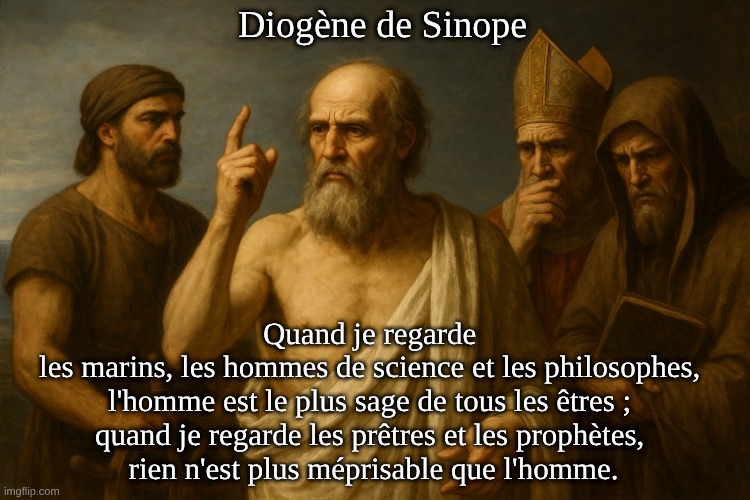 Quand je regarde les marins, les hommes de science et les philosophes, l’homme est le plus sage de tous les êtres ; quand je regarde les prêtres et les prophètes, rien n’est plus méprisable que l’homme.