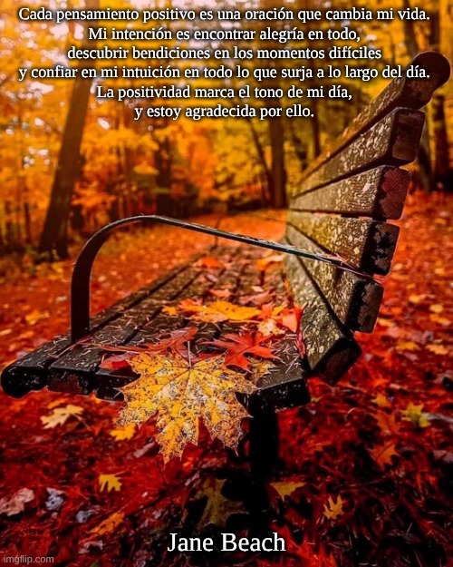 Cada pensamiento positivo es una oración que cambia mi vida. Mi intención es encontrar alegría en todo, descubrir bendiciones en los momentos difíciles y confiar en mi intuición en todo lo que surja a lo largo del día. La positividad marca el tono de mi día, y estoy agradecida por ello.