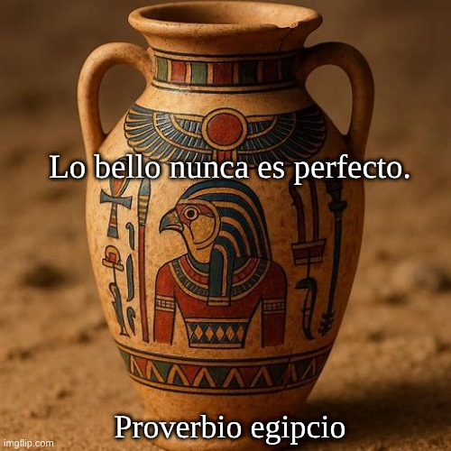 Imagen: Peter van Geest AI. Significado: La perfección es artificial, la imperfección es natural y reconocible. Origen: Aunque es difícil afirmar con total certeza que un egipcio concreto pronunció estas palabras, el significado aquí mencionado —la lección religioso-filosófica de humildad ante los dioses— es precisamente el que se atribuye al antiguo Egipto. Se trata de un concepto cultural profundamente arraigado frente a una cita literal y documentada.