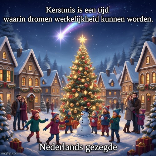 Afbeelding: Peter van Geest AI. Betekenis: Dit citaat benadrukt de magie van Kerstmis en de hoop dat tijdens deze feestelijke periode dromen en wensen kunnen uitkomen. Oorsprong:Seizoensgebonden: Het citaat is typisch voor de kerstperiode, waarin veel mensen reflecteren op hun dromen en verlangens. Culturele context: Kerstmis wordt vaak gezien als een tijd van geven, delen en hoop, wat de boodschap van het citaat versterkt. Auteur:Onbekend: Het lijkt een algemene uitspraak te zijn die niet specifiek aan een bepaalde auteur kan worden toegeschreven. Het weerspiegelt echter een breed gedeeld gevoel over de feestdagen. Conclusie: Dit citaat roept een gevoel van optimisme en mogelijkheid op, wat de essentie van de kerstviering onderstreept.