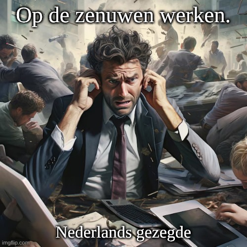 Afbeelding: Peter van Geest AI. Betekenis: Deze uitdrukking betekent dat iemand of iets je irriteert, ergert of zenuwachtig maakt. Het drukt uit dat je door iemands gedrag of een situatie geprikkeld of gespannen raakt. Oorsprong: Dit is een volksuitdrukking die organisch in de spreektaal is gegroeid en komt uit de medische wetenschap van de 19e eeuw, toen er veel onderzoek werd gedaan naar het zenuwstelsel en de werking van zenuwen. In die tijd ontstond het besef dat zenuwen letterlijk geprikkeld of gestimuleerd konden worden, wat tot fysieke en mentale reacties leidde.