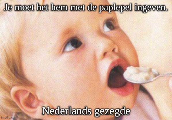 Foto: youtube. Betekenis: Dit gezegde betekent dat als je iets wilt bereiken (zoals het eten van pap), je de juiste middelen of acties moet hebben (zoals een lepel). Het benadrukt het belang van voorbereiding en het nemen van de juiste stappen om je doelen te bereiken. Oorsprong:Culturele context: Dit is een Nederlands spreekwoord dat al lange tijd in gebruik is. Het weerspiegelt de praktische en nuchtere benadering van het leven die in de Nederlandse cultuur te vinden is. Gebruik: Het wordt vaak gebruikt om mensen eraan te herinneren dat ze voorbereid moeten zijn en de juiste middelen moeten hebben om hun doelen te bereiken. Auteur: Dit gezegde is een traditioneel Nederlands spreekwoord en heeft geen specifieke auteur. Het behoort tot de volkswijsheid die door de jaren heen is doorgegeven. Samenvatting: Dit gezegde benadrukt het belang van voorbereiding en het hebben van de juiste middelen om succesvol te zijn in wat je wilt bereiken. Het is een waardevol advies dat in vele levenssituaties toepasbaar is.