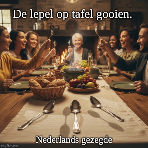 Afbeelding: Peter van Geest AI. Betekenis:Bij Gastvrijheid: Het gezegde verwijst naar het idee dat iemand bij een ander te gast gaat, wat een teken van vriendschap en saamhorigheid is. Traditionele Betekenis: Het meenemen van je eigen lepel symboliseert dat je voorbereid bent om te delen in de maaltijd en dat je actief deelneemt aan de gastvrijheid van de gastheer. Historische Context Eetgewoonten: In vroegere tijden, vooral in plattelandsgebieden, was het gebruikelijker om je eigen eetgerei mee te nemen, zoals een lepel, omdat niet iedereen toegang had tot voldoende bestek. Dit was een praktische oplossing. Sociale Normen: Het meenemen van een lepel kan ook gezien worden als een teken van respect voor de gastheer, omdat het de gastheer minder belasting geeft in het verzorgen van de maaltijd. Culturele Relevantie Gastvrijheid: In veel culturen is gastvrijheid een belangrijk aspect van sociale interacties. Het gezegde benadrukt de waarde van samen eten en de verbindingen die hierdoor ontstaan. Symboliek van de Lepel: De lepel zelf heeft een belangrijke rol in de eetervaring, en het gebruik van een lepel kan ook een symbool zijn voor het delen van voedsel en levenservaringen. Gebruik in de Moderne Taal Hedendaagse Interpretatie: Hoewel de oorspronkelijke betekenis mogelijk minder bekend is bij jongere generaties, kan het gezegde nog steeds worden gebruikt om de intentie van gastvrijheid en saamhorigheid uit te drukken. Variaties: Er kunnen regionale variaties bestaan in de interpretatie van het gezegde, afhankelijk van lokale tradities en gebruiken. Samenvatting Betekenis: Bij iemand te gast gaan, met een focus op gastvrijheid en saamhorigheid. Historische Context: Het meenemen van een lepel als praktische en sociale norm. Culturele Relevantie: Gastvrijheid is een belangrijk aspect van menselijke interactie en verbinding. Moderne Gebruik: Nog steeds relevant in gesprekken over gastvrijheid, hoewel de oorspronkelijke betekenis minder bekend kan zijn.